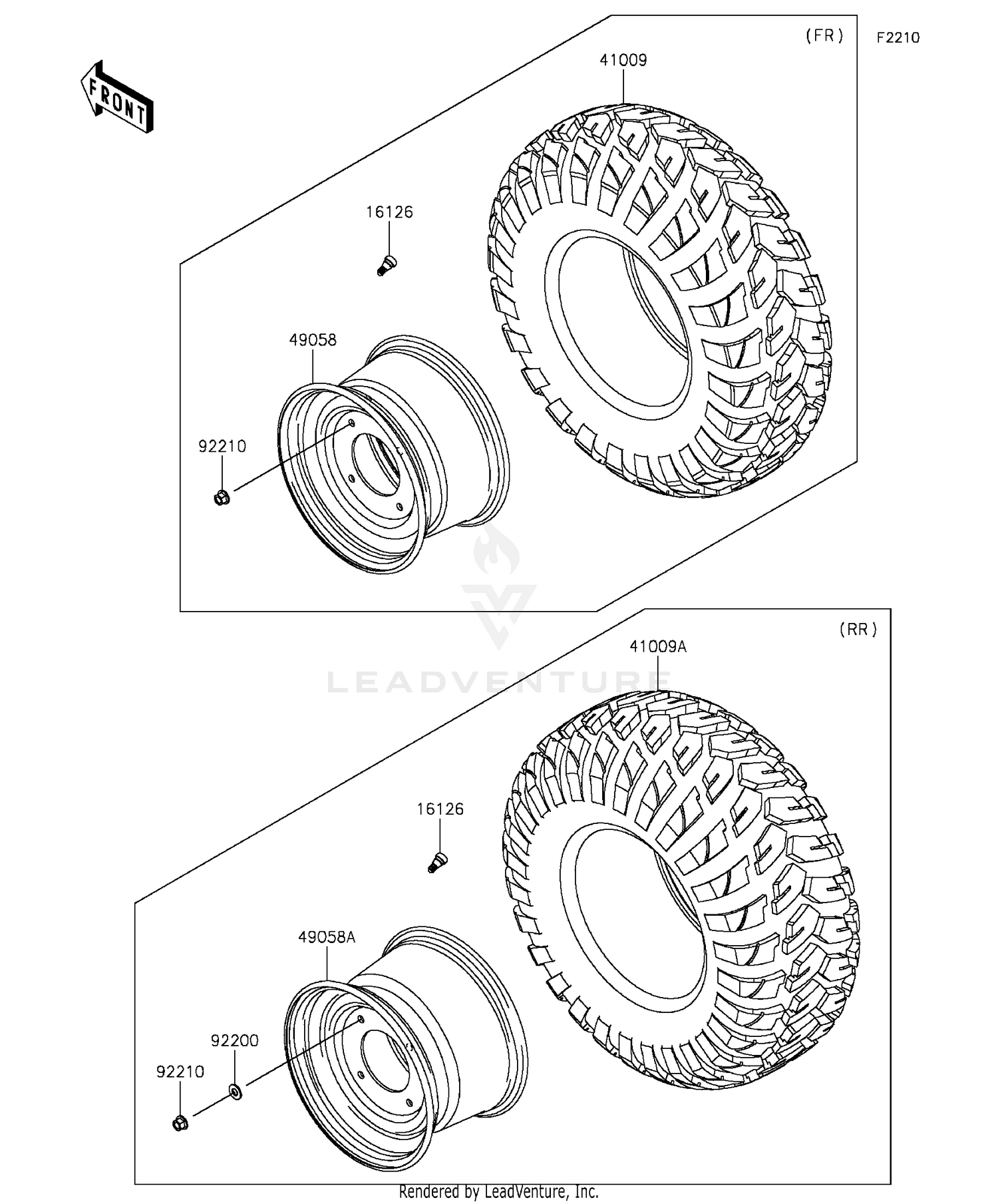 BK3002 Bayou 220-250 Front Wheel Kit.